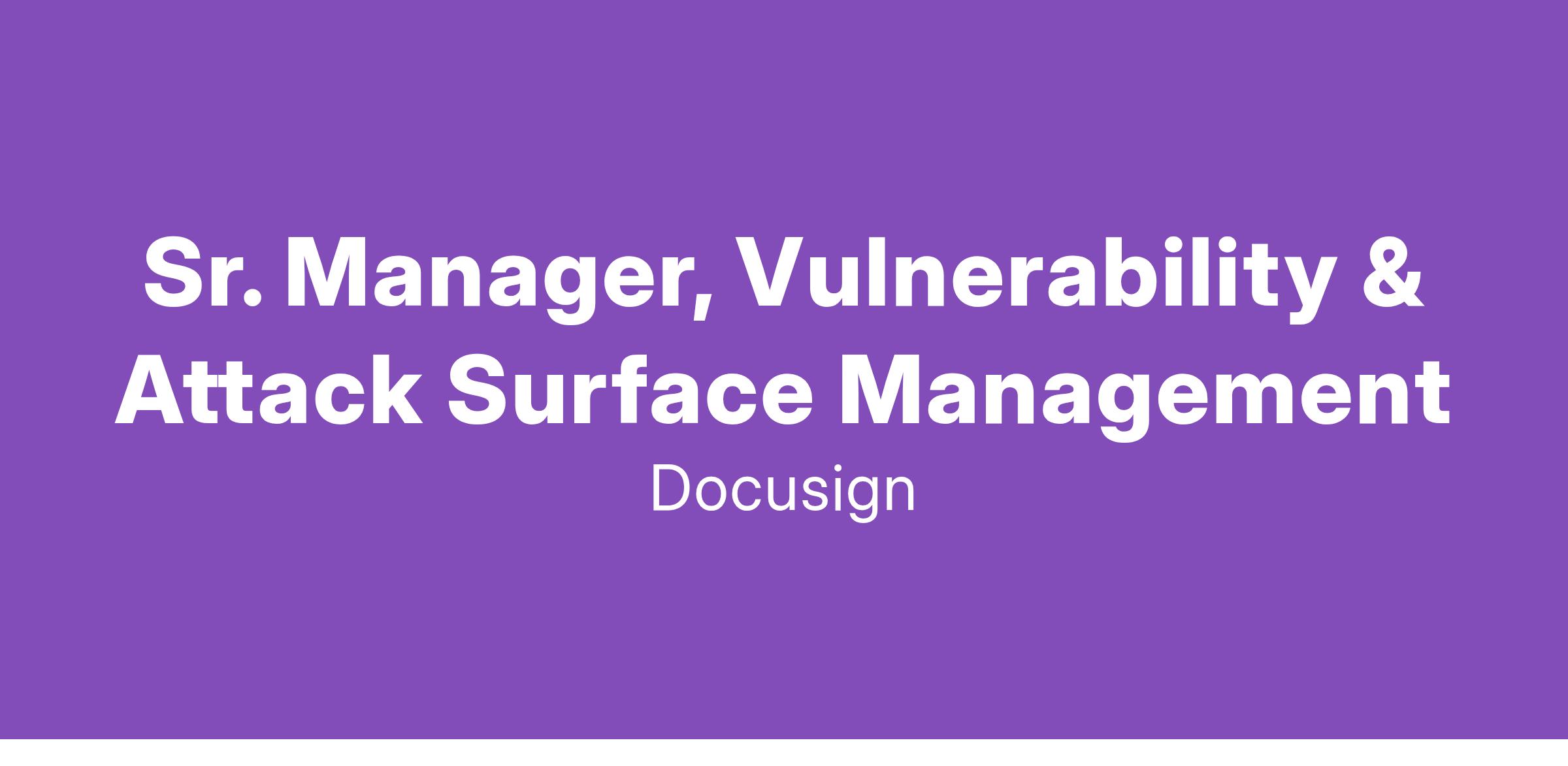 This position leads the Docusign Vulnerability and Attack Surface Management Team protecting Docusign’s environments, customers, and employees by driving infrastructure attack surface reduction. Docusign’s vulnerability management program is responsible for the detection, assessment, and remediation of vulnerabilities across the enterprise, a crucial component of our security ecosystem. A strong leader for this team brings domain expertise in vulnerability management, experience in designing and executing on long-term strategy, and a passion for guiding individuals in their career growth. The Senior Manager of Vulnerability Management has a direct responsibility to build and innovate on the program’s strategy and processes, and evolve a team of highly technical security engineers tasked with planning, building, operating, and maturing our core services. This position partners cross-functionally with leaders and business partners across Docusign to drive down risk and threats to the environment. The ideal candidate is someone with a solid understanding of technology, vulnerabilities, networking, and system implementations as well as automated patching and resolution.